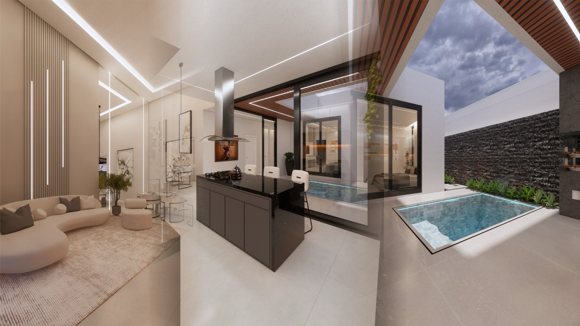 Com arquitetura moderna e imponente, acabamentos de alto padrão e integração total dos ambientes, ela tráz sofisticação e funcionalidade. Com a maior área construída entre as casas térreas do condomínio, oferece mais conforto, economia e bem-estar.